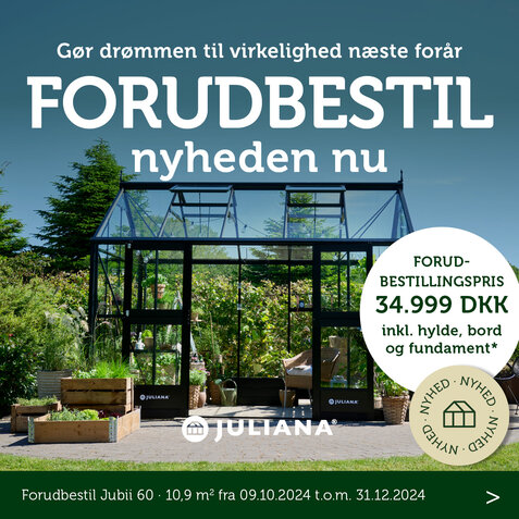 Kan du heller ikke vente til, at det bliver forår? Forudbestil vores nye Jubii 60 · 10,9 m², og få det leveret til foråret, så du er klar til forårsdyrkning i 2025.
