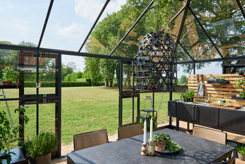 Das Juliana Gartner ist für alle gedacht, die größer planen und viele Stunden im Gewächshaus verbringen möchten. Dieses Modell bietet dank zusätlicher Breite viel Platz für Aussaat, Pflanzenpflege und Ernte. Gleichzeitig bietet das Gartner genug Raum, um das Gewächshaus auch als naturnahen Aufenthaltsort im Garten zu nutzen.