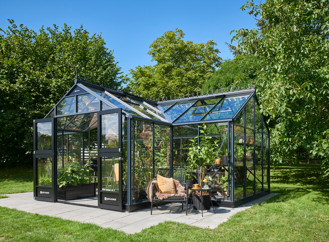 Entdecken Sie Juliana Gewächshäuser, die zu Ihren Wünschen, Ihrem Platzangebot und Ihrer Art des Gärtnerns passen – vom kompakten Modellen bis zu großzügigen Orangerien.
