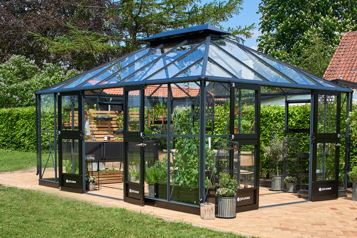 Wer mehr Platz im Garten zur Verfügung hat, kann das Gewächshaus ganz anders denken: nicht nur als Ort für Kräuter und Gemüse, sondern auch als Raum für Bewegung, Gestaltung und kleine Auszeiten im Alltag. Juliana bietet dafür Modelle, die den Schritt vom kompakten Stadtgewächshaus hin zum großzügigen Gartenraum ganz selbstverständlich machen.